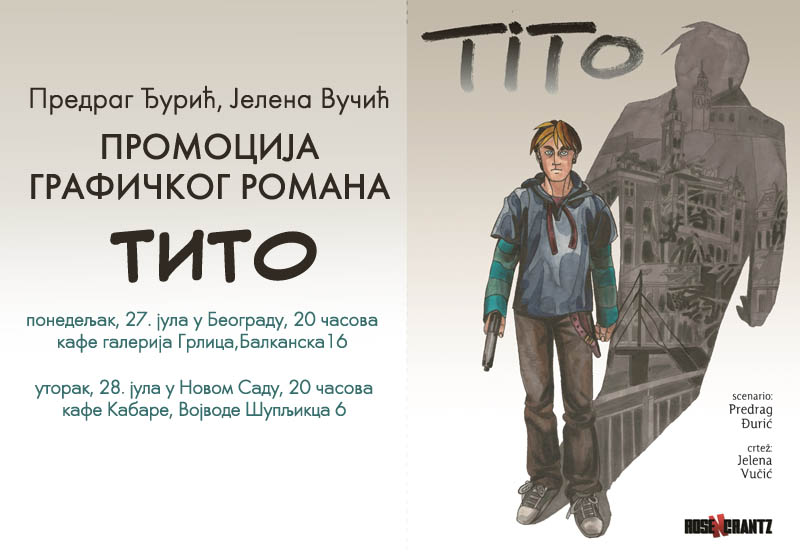 Београд: Поводом изласка из штампе графичког романа „Тито“, издавачка кућа ROSENCRANTZ вас на промоцију, која ће се одржати у кафе галерији Грлица у Београду, Балканска 16, у понедељак, 27. јула са почетком у 20 часова. У оквиру промоције читаоци ће моћи да набаве ово, као и друга издања ROSENCRANTZ-a, као и да поразговарају са ауторима и добију њихове посвете. Такође, у оквиру изложбе посетиоци ће моћи да погледају изложене оригиналне табле „Тита“.