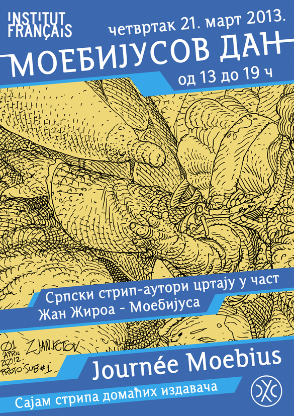 У оквиру изложбе „Наставља се... – три генерације савременог српског стрипа“ у четвртак, 21.03.2013. у периоду од 13 до 19 часова у Француском институту у Београду (Кнез Михајлова 31) ће бити организиван „Мебијусов дан“.